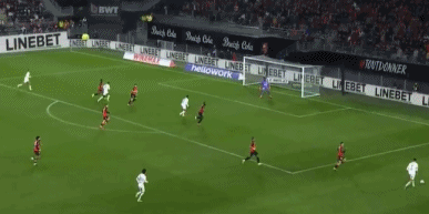 第34分钟,努诺-门德斯后场解围失误,塔马里右路突破,晃开帕乔果断兜射,萨福诺夫鞭长莫及,雷恩打破僵局,1-0!